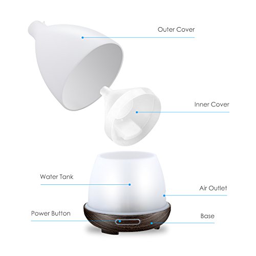 Cute Night Light: URPOWER diffuser has different light modes for you to choose. It will be 7 color changing mode when you press the light button in the first time. It will be fixed color mode when you press the light button in the second time.