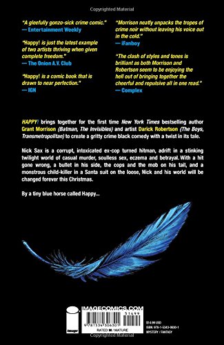 Meet Nick Sax: a corrupt, intoxicated ex-cop turned hitman, adrift in a stinking twilight world of casual murder, soulless sex, eczema, and betrayal. With a hit gone wrong, a bullet in his side, the cops and the mob on his tail, and a monstrous child killer in a Santa suit on the loose, Nick and his world will be changed forever this Christmas by a tiny blue horse called Happy....