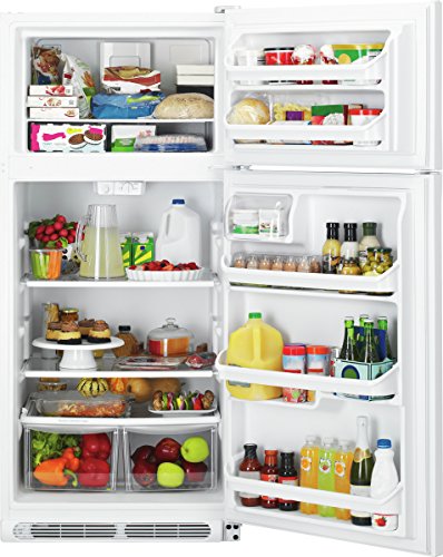 This Kenmore top freezer refrigerator has 18 cubic feet of interior space, perfect for stocking up on snacks, leftovers, lunches and cans of soda for the home or office. Full-width adjustable glass shelves and 2 clear plastic crisper drawers give you near-limitless interior organization options. Keep delicious leftovers right next to lunch bags and other groceries, and stash crisp produce in the humidity controlled crisper. No more trying to puzzle out how to fit food in the fridge. Gallon door bins make it easy to store tall items and beverages alongside staple sauces, dressings and other ingredients. Tall item accommodation on the bottom shelf means more space for bottles of wine and water; no more trying to shove things wherever they'll fit. No more digging through a pile of frozen food for a bag of peas. This Kenmore frost-free top freezer helps you keep foods nice and organized with two door bins and a single shelf.Only available in select cities. Item includes room of choice delivery, unboxing, item hook-up (including required parts) and free optional haul-away at checkout