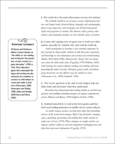 Help students read and engage with textbooks, and navigate the special demands of any non-fiction text structure. In this highly practical book, master teacher Laura Robb shares dozens of strategy lessons to use before, during, and after reading. Other chapters show you how to support students one-on one, how to use discussions to deepen learning, build vocabulary, and use literature in the content areas. Includes lots of examples for social studies, science, and math. For use with Grades 3 & Up.