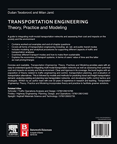Transportation Engineering: Theory, Practice and Modeling is a guide for integrating multi-modal transportation networks and assessing their potential cost and impact on society and the environment. Clear and rigorous in its coverage, the authors begin with an exposition of theory related to traffic engineering and control, transportation planning, and an evaluation of transportation alternatives that is followed by models and methods for predicting travel and freight transportation demand, analyzing existing and planning new transportation networks, and developing traffic control tactics and strategies. Written by an author team with over thirty years of experience in both research and teaching, the book incorporates both theory and practice to facilitate greener solutions.